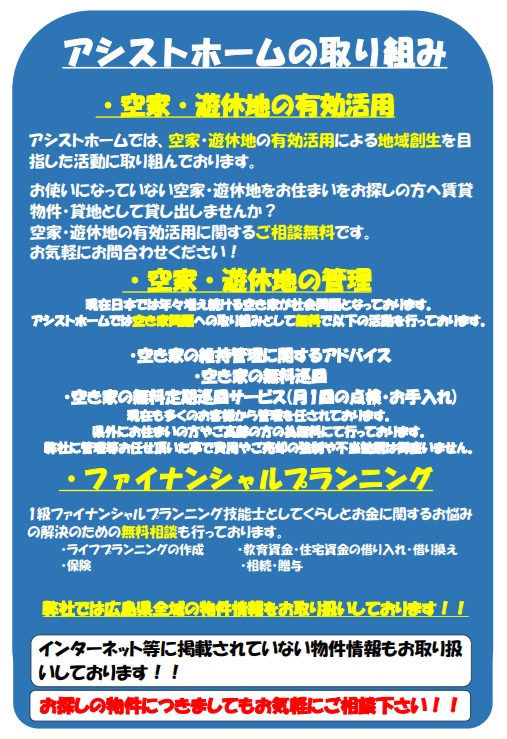 また売却物件の管理につきましても無料で行わせて頂いておりますのでお気軽にご相談下さい。